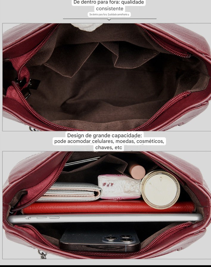 Acabamento Impecável: Dos detalhes do fecho à textura do couro, cada elemento reforça a promessa de durabilidade e estilo da Margault.