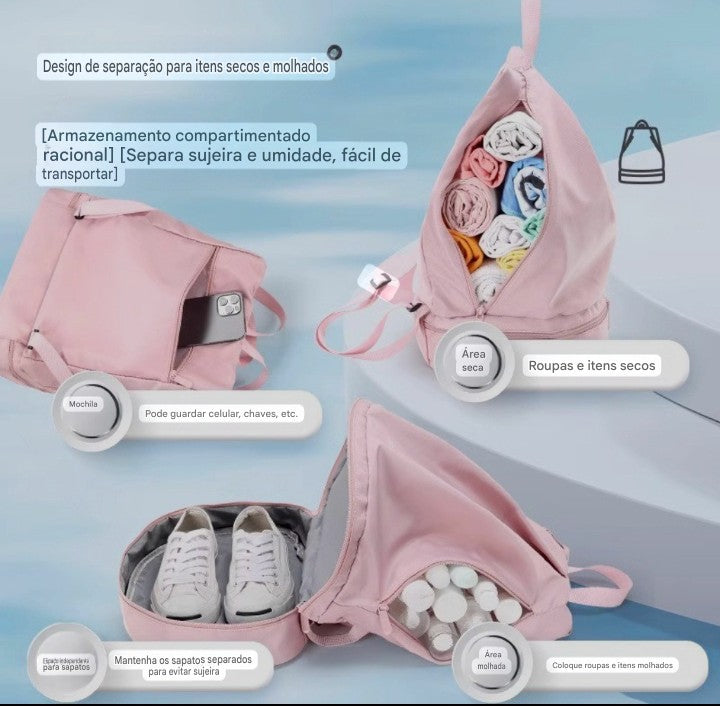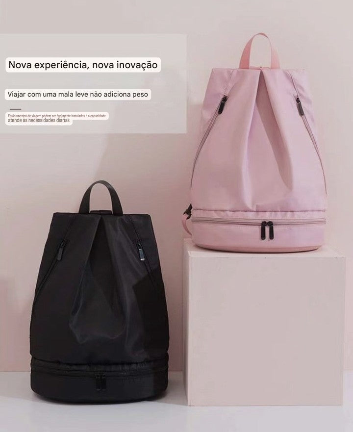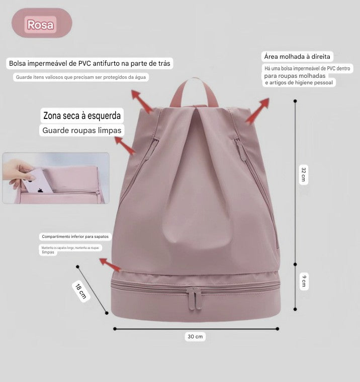 O nome Duo Dry Wet é o seu segredo para a impecabilidade. O design minimalista em Nylon premium (resistente e com acabamento Margault) oferece compartimentos de isolamento que separam o suor do sucesso, a roupa de treino dos seus gadgets de trabalho. É a prova visível do seu planejamento impecável e da sua capacidade de transitar entre ambientes de elite sem perder a compostura.