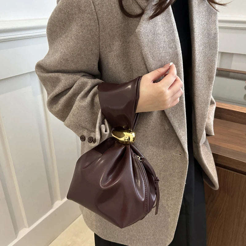 Detalhes Distintos: O fecho central e o hardware metálico são cuidadosamente polidos, adicionando um toque de brilho sofisticado que complementa a rica textura do couro.